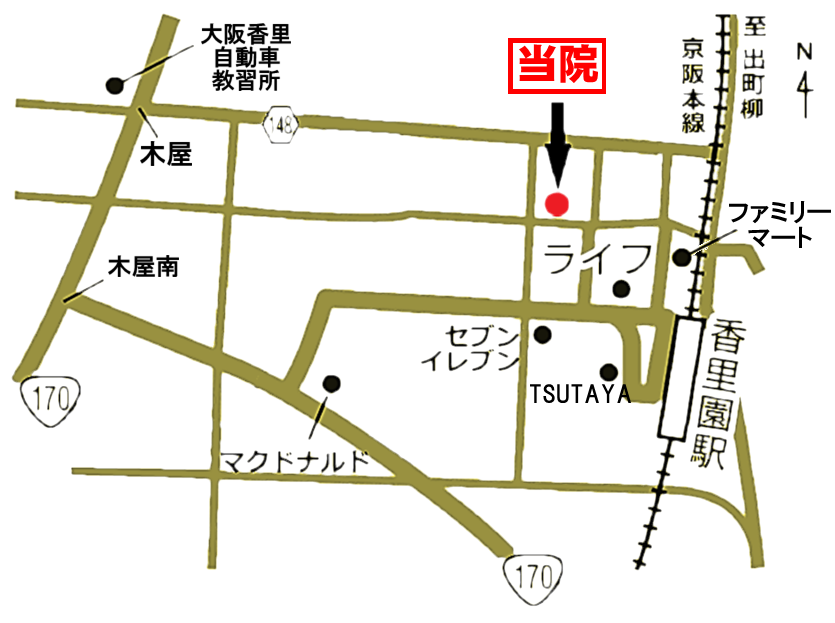 〒572-0085 大阪府寝屋川市香里新町22-6 メディカルプラザ香里新町1階
