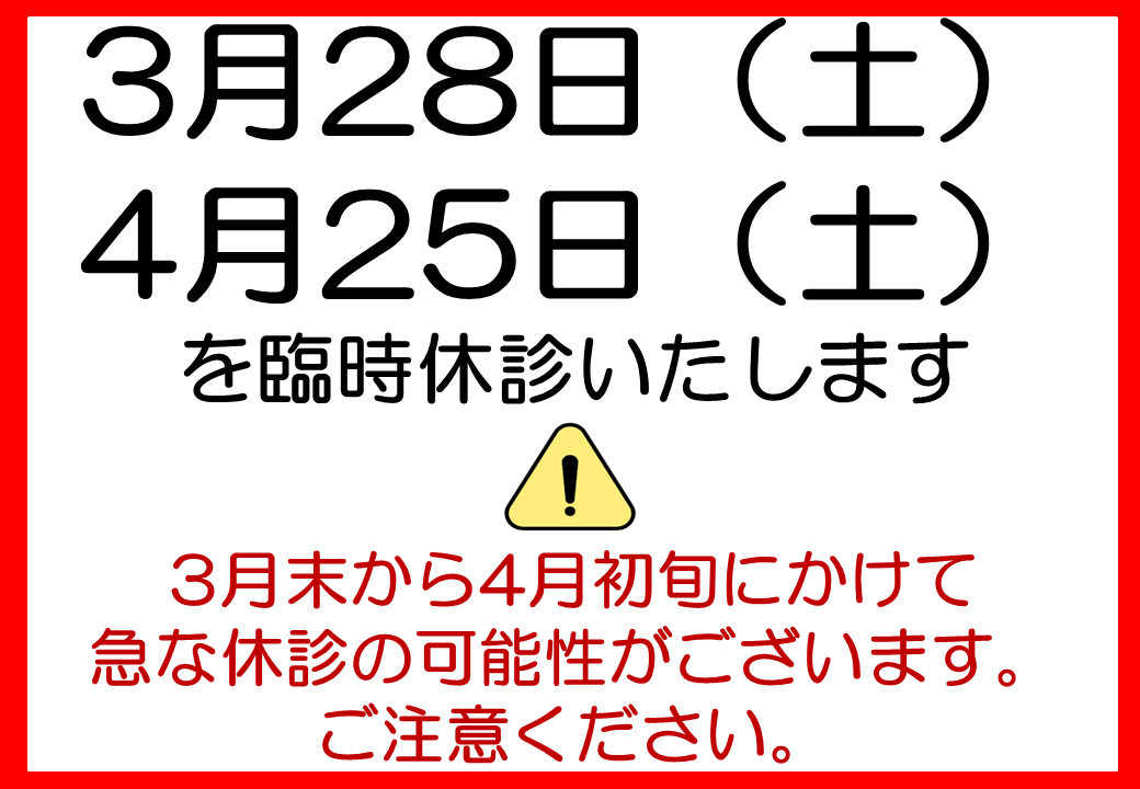 ★学会などで臨時休診となることがございます。「お知らせ」でご確認ください。